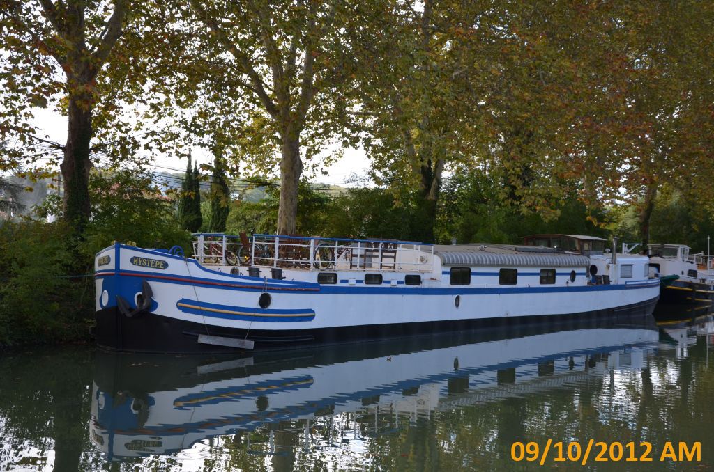 Voici le bateau à Montgiscard. Il est amarré au petit quai situé entre le lavoir et l’écluse.