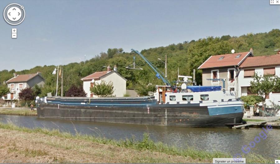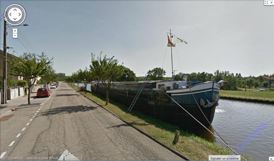 EL PASO y était amarré depuis quelques semaines, juste au moment où le marinier peignait la nouvelle devise sur le nez du bateau ! Voici ce qu'on voit sur Street View :