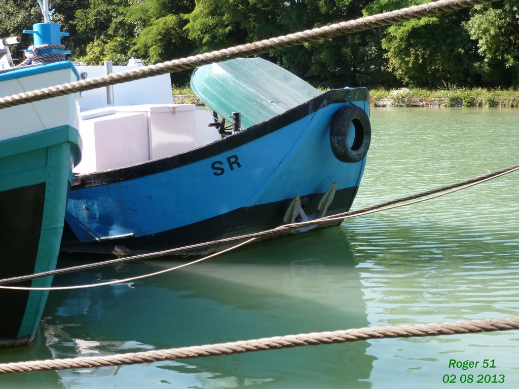 pour la devise , SR , comme son ancien strasbourg , S (simonne) et R (raymond) SALM , des bateliers de Pont à bar , que j' ai connu sur le canal latéral à la Garonne quand ils sont venus en 1996 et d'ailleurs sont restés dans le Sud ouest pour le reste de leur retraite ,ce bateau a été raccourci de quelques mètres pour pouvoir aller partout et il est motorisé avec un Berliet , bon j'en laisse un peu à découvrir pour les autres