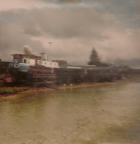 Le chantier á Pont-à-Bar. Il y a 27 ans entre cettes deux photos. Une installation centrale d`une chantier est disparue: la pente et les rails pour tirer des "grandes" péniches à la terre. Pour les petits bateau la grue et suffisante en 2013.