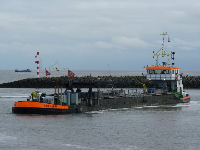 Adelaar , 60,18 x 8,05 x 3,02 , 928 ton , Bouwjaar 1959 , Werf Sleephelling Mij. Scheveningen in Scheveningen ( Nederland ) , 2 x 340 pk Scania , eigenaar de Boer Baggerbedrijf in Sliedrecht , ENI 02312319