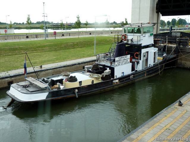 Curacao , 21,97 x 4,97 x 2,48 , Bouwjaar 1931 , Werf Marckmann & Faassen in Capelle a/d IJssel ( Nederland ) , 795 pk Deutz , ex Risico II , ex Fiat Voluntas XVIII , ex Montini , ex Leja 1 , ex Elly , ex Maurice , ex Barzabel , eigenaar Voets Shipment BV in Maasbracht , ENI 06004113