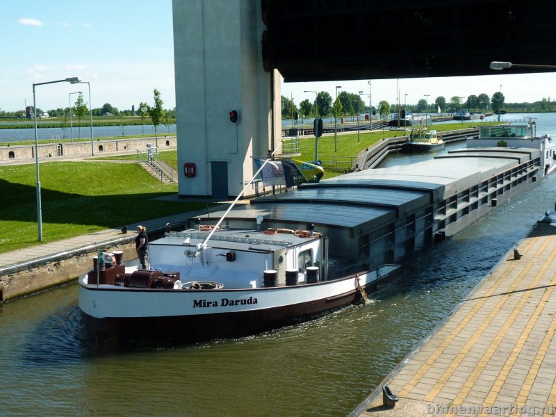 Mira Daruda , 73,03 x 8,20 x 2,82 , 1153 ton , Bouwjaar 1963 , Werf Weserwerft, Minden ( Duitsland ) , 900 pk Wärtsilä en 300 pk DAF boegschroef , ex Rhenus 107 , ex Rapid , ex Alpha , ex Golden River , ex Diligent , eigenaar Mira Forti NV (J. van Sandijk & K. Romeijnders) in Maasbracht , ENI 02314193