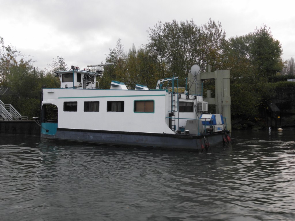 Arrière d'un Bateau pétrolier à SOGESTRAN coupé et transformé en Pousseur