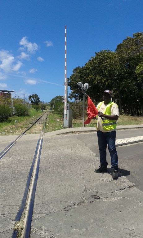 Environ 50 m avant un croisement avec la route, le traine-touriste s'arrête et l’accompagnateur ( il m'a dit que c'était sa qualification professionnelle) descend, arrête les voitures et après la barrière ferme la circulation. Grosses responsabilités et moments intenses, car il doit y passer quelques voitures par jour.