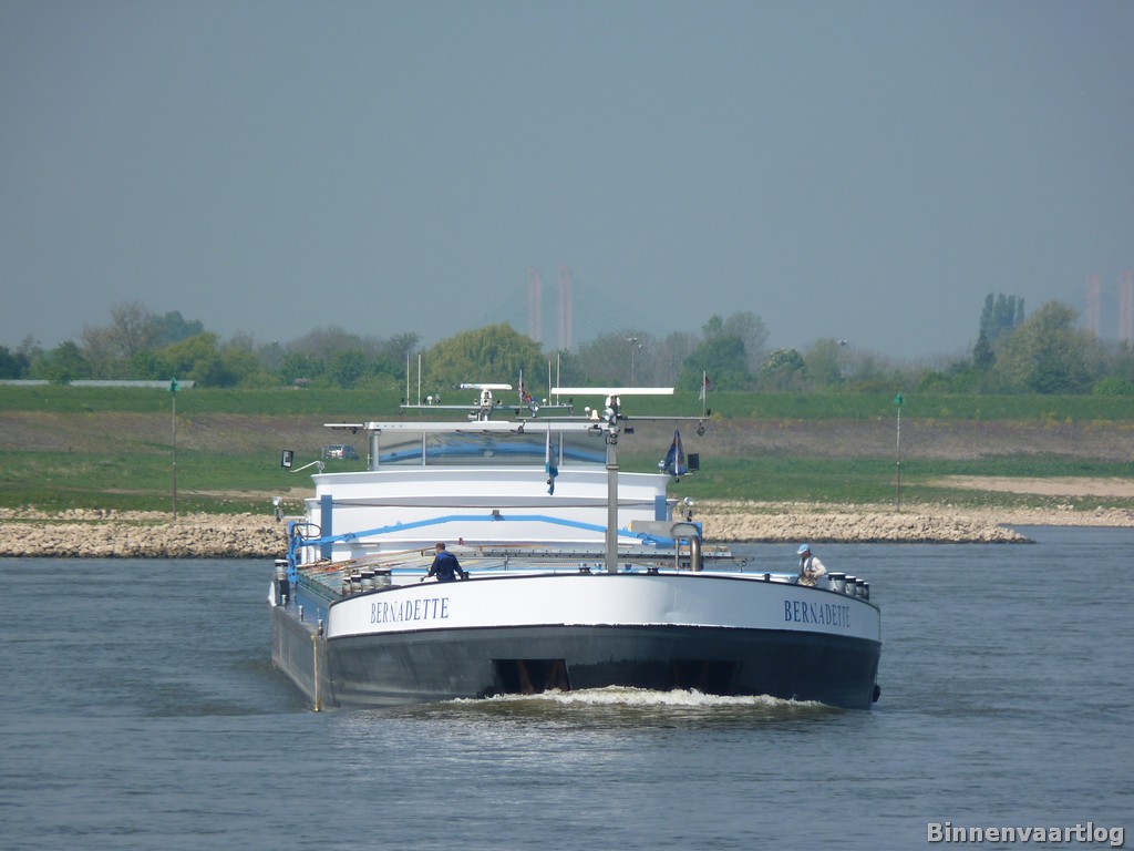 Bernadette , 110,00 x 11,45 x 3,45 , 3009 ton , Bouwjaar 2002 , Werf Centromost Stcznia Rzeczna in Plock ( Polen ) en De Gerlien – van Tiem in Druten ( Nederland ) , 1700 pk Mitsubishi en 791 pk MTU – van Tiem boegschroef , ex Bernadette , eigenaar Bernadette BV ( J.Pott ) in Nijmegen , ENI 02325642