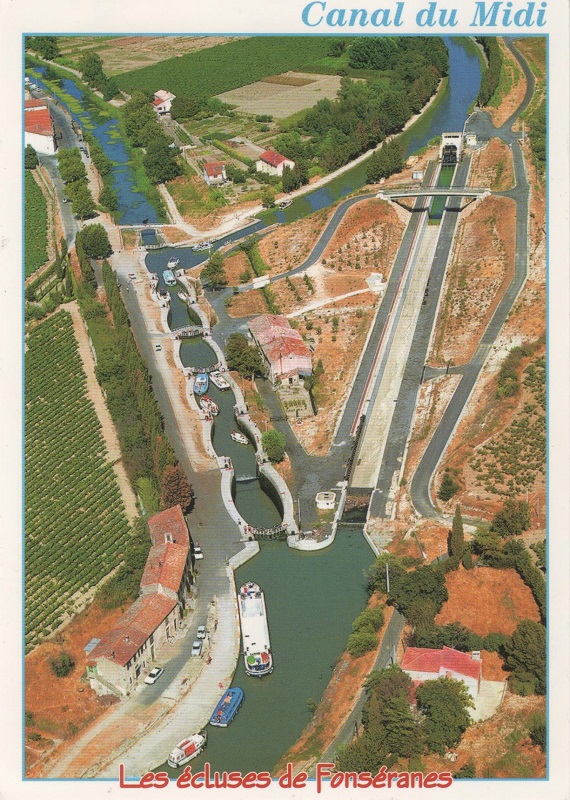 Tout pimpant neuf- on rigolait beaucoup pour le passer parce qu'a chaque passage il y avait un incident de parcours, souvent la flotte fuyait sous la pelle et il fallait laisser descendre un petit tsunami depuis la porte amont. Il a pas fonctionné longtemps, dans la pluie, avec le Papillon, on est descendu a 4 fois la vitesse normale avec les pneus qui glissait et le hydraulique qui ne freinait pas, la pelle a envoyé une vague de 1m20 a travers le pont canal sur l'Orb, et mise un batea de location en fâcheuse posture sur le chemin de halage. Apres cela, je ne suis jamais monté avec la machine un autre fois!