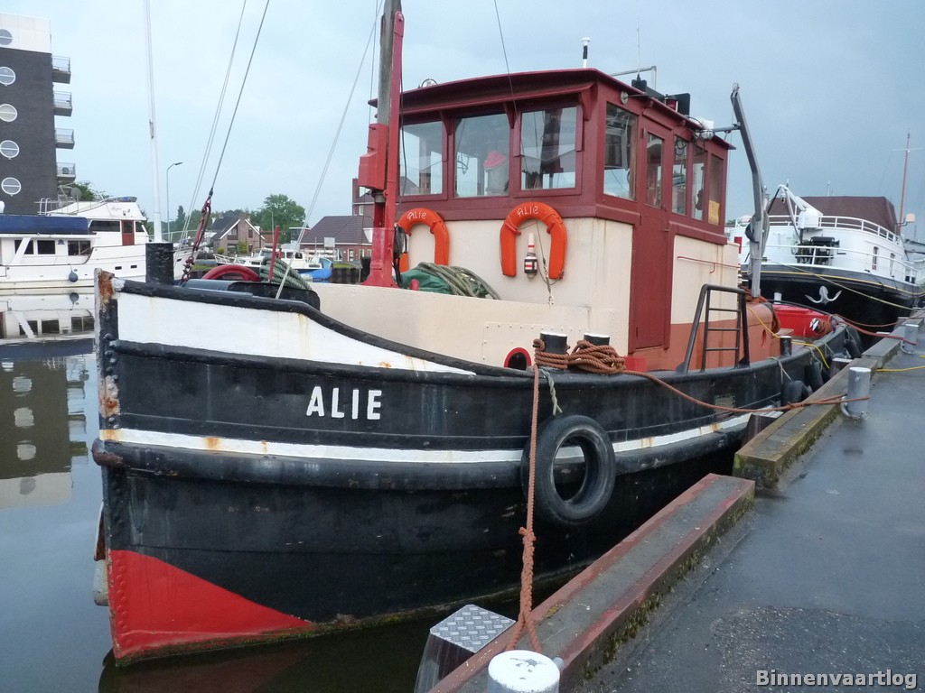 Alie , 15,20 x 3,95 x 2,25 , Bouwjaar 1918 , Werf Wortelboer in Foxhol ( Nederland ) , 1 x 3 cilinder Industrie nr.3229 type 3VD6A uit 1941 vermogen 150 apk. = 110 kW. bij 330 r.p.m , ex 1918 Anna Maria/J.Koekoek in Zwijndrecht , ex 09-09-1931 Leonora Maria/W.van Riemsdijk in Rotterdam , 09-12-1937 Vigila/F.Goedgezelschap in ‘s-Hertogenbosch , ex 15-01-1949 Vigila/D.Verdoorn in Zwijndrecht , ex 01-06-1951 St.Antony/Ch.C.de Bot in Roosendaal , ex 06-07-1960 Bernard/Th.de Bot in Maasbracht , ex 16-04-1964 Hardi III/A.van Opijnen in Rotterdam , ex 20-04-1970 Harlo/H.J.Fase in Heenvliet , ex 02-02-1972 Diana/J.Jiskoot in Hendrik Ido Ambacht , ex 05-09-1974 Annamathilde/Gebr. Bekker in Groningen , eigenaar Oostland in Termunten , ENI 3250169