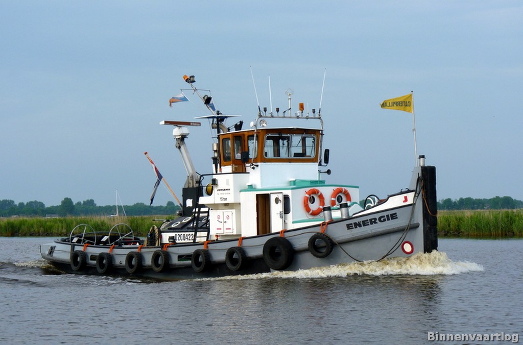 Energie , 17,32 x 4,56 x 2,05 , 15 ton , Bouwjaar 1940 , Werf Bijlsma in Wartena ( Nederland ) , 365 pk Caterpillar , ex 2 x Navic , ex R.V.16 , ex Droogdok 8 , ex S.H.O 24 , ex Heuko X , ex Klokner STP 10 , ex Gepke 2 , ex De Jonge Gerbrand 5 , eigenaar R.Jongema in Nijega , ENI 02004223