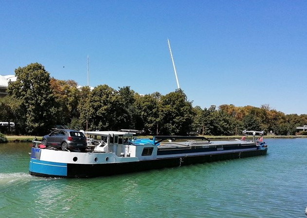 Sur le canal de la Marne au Rhin en juillet 2015, écluse 8 de la vallée de Sauvoy : il a chargé de l'orge à Pogny (51) pour Denain, mais suite à un imprévu sur la marchandise, il a été vider à Metz (nouveau port)