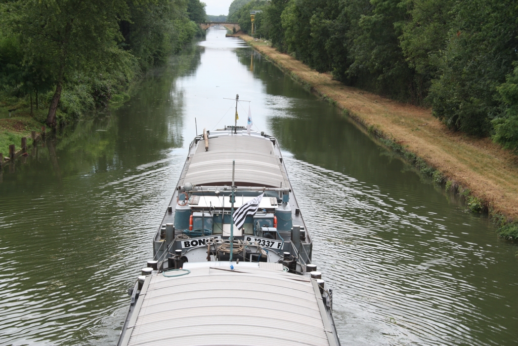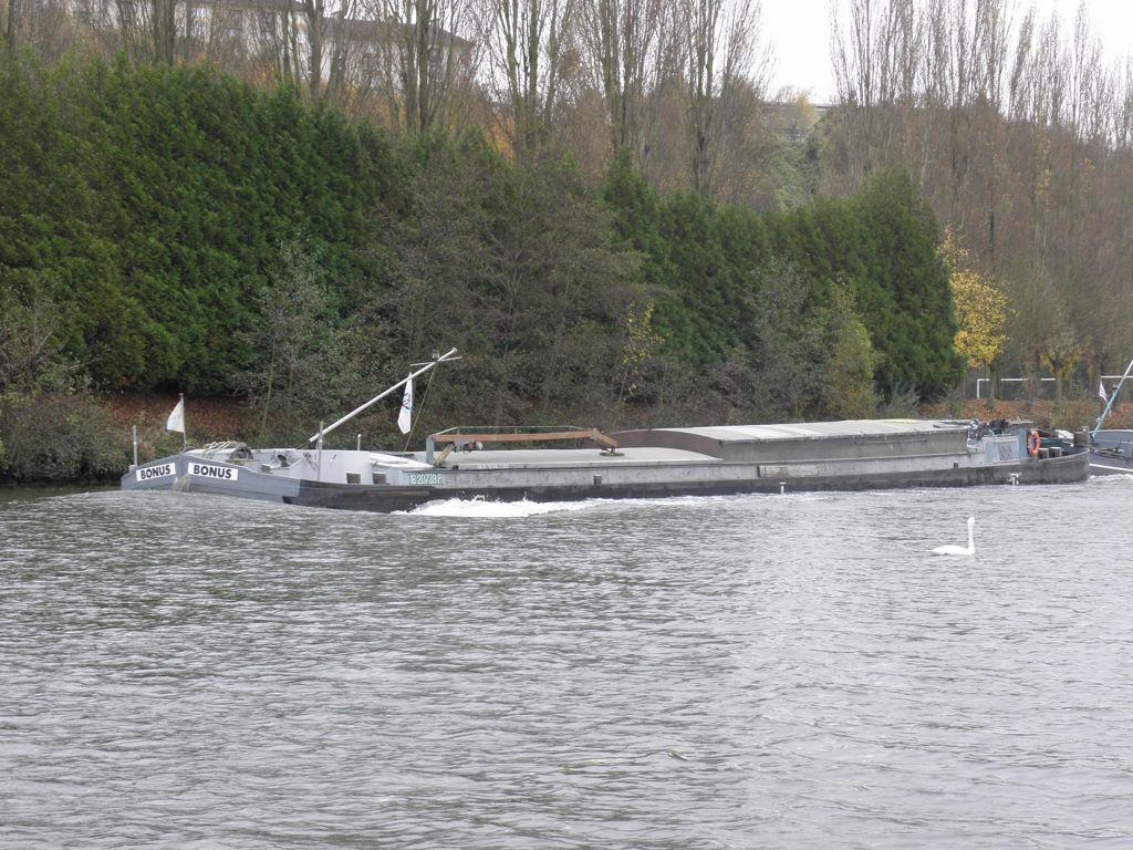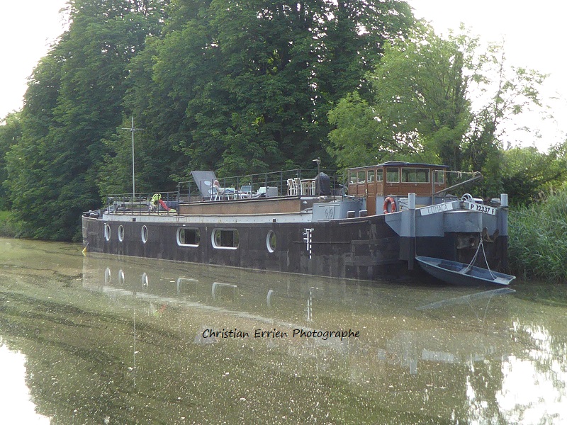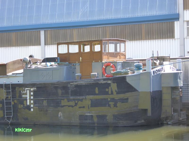 Sa nouvelle vie de bateau-logement : il est en cours d'aménagement au chantier Miclo, à Dombasle ; il y a quelques semaines, il a été ballasté avec des traverses en béton, et dans la bordaille, sur le côté qu'on ne voit pas sur les photos, il y a des trous...