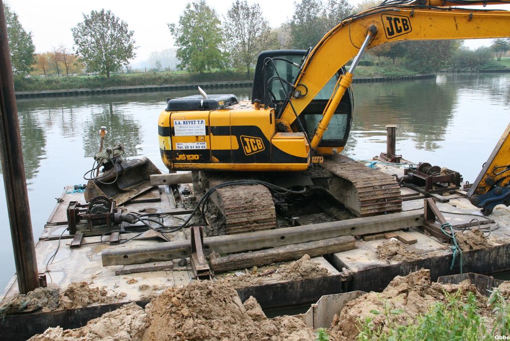 Mais actuellement je confirme, sur l'Escaut la pelleteuse se déplace sur le ponton, une grosse poutrelle lui sert de butoir.