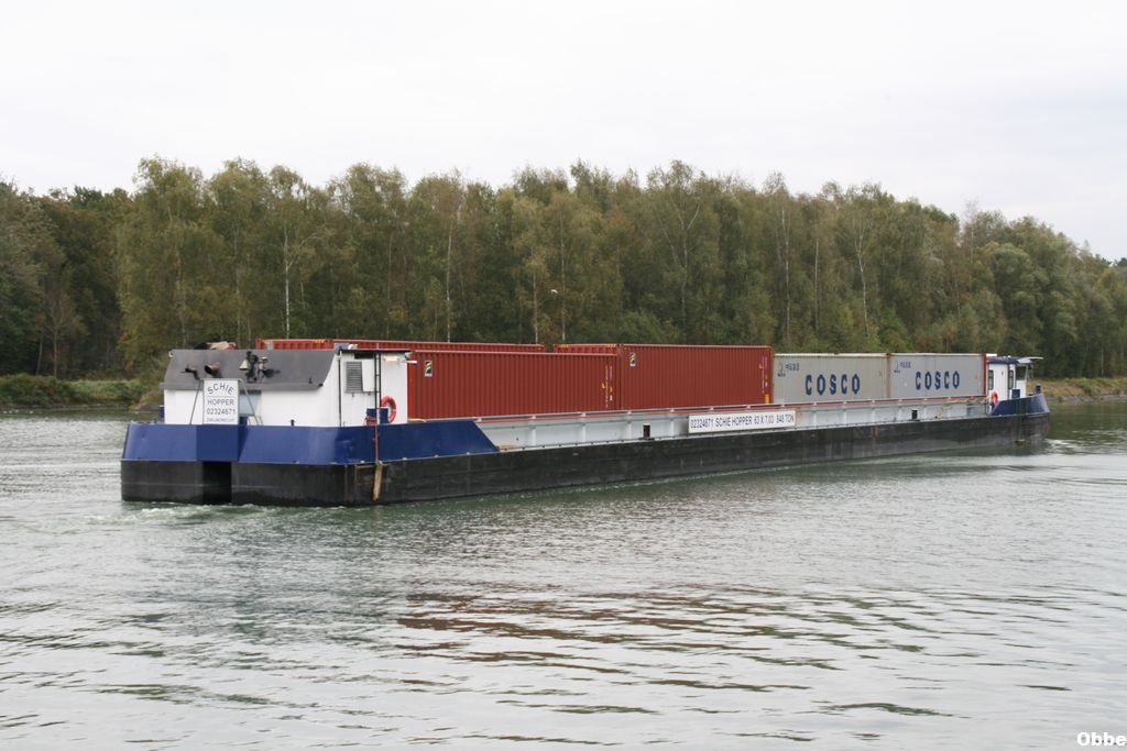 Schie Hopper , 63,00 x 7,03 x 2,50 , 848 ton , Bouwjaar 2000 , Werf Harlingen in Harlingen ( Nederland ) , 638 pk Scania , ex Versteijen , ex Gemini , ex Amer Hopper , ex Regge Hopper , eigenaar Mercurius Scheepvaart in Zwijndrecht , ENI 02324671