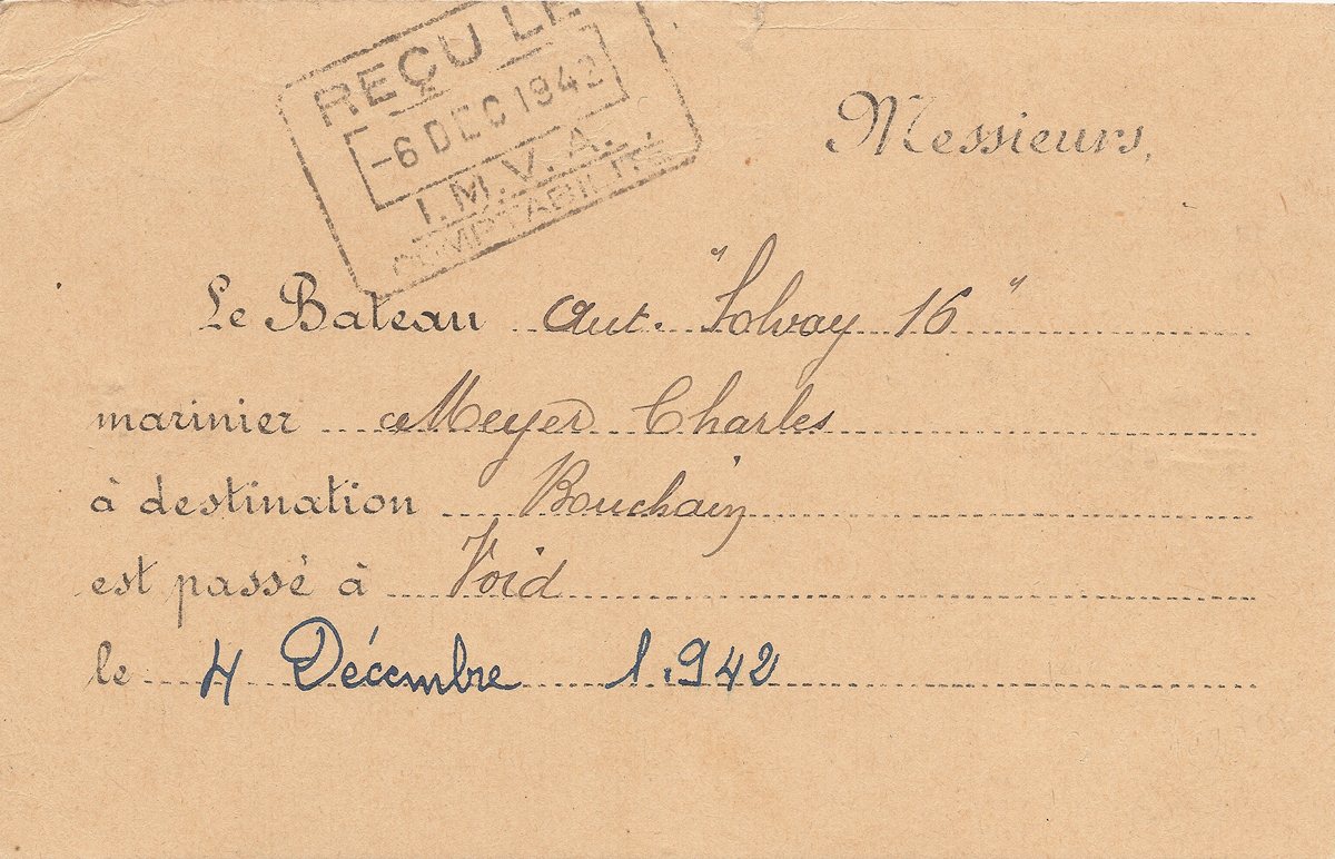 Re: Avis de passage - SOLVAY 16 à Void - 1942