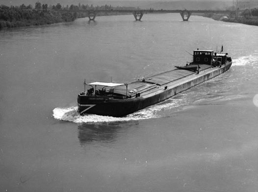 La photo de l'HENRY DAMOUR, avant 1956 donc, en amont du viaduc SNCF de La Voulte, n'est pas terrible, mais je suis en phase d'apprentissage. C'est un essai. j'essaierai de mieux faire.