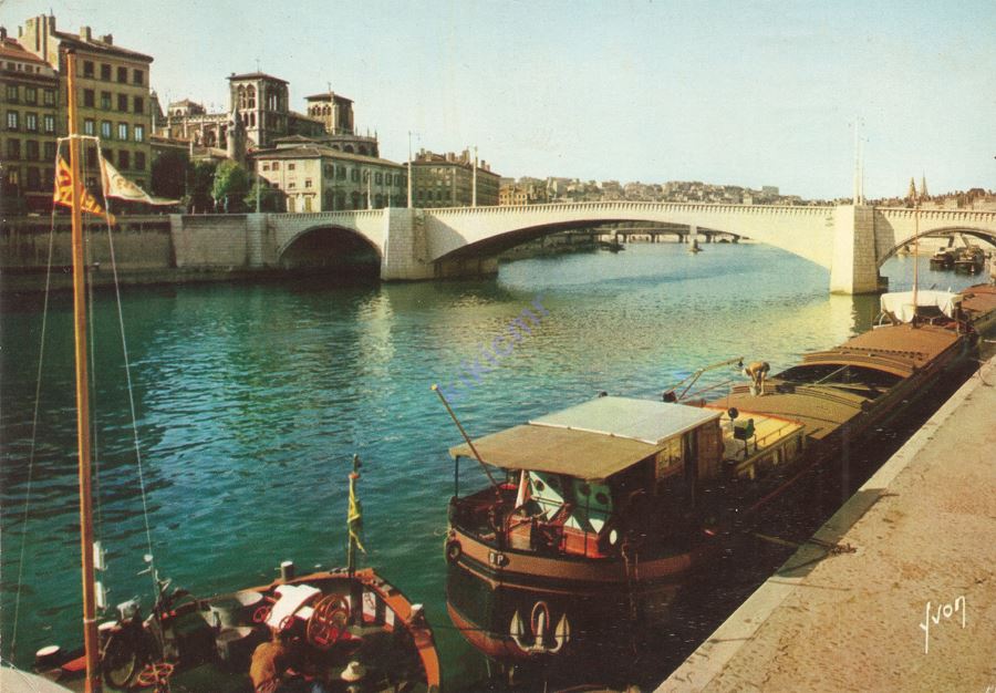 Lyon (Rhône) - La Saône - Le pont de Tilsitt et la cathédrale Saint-Jean