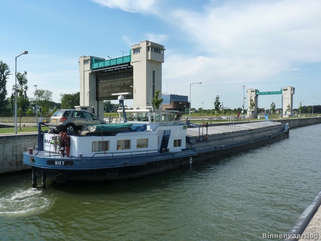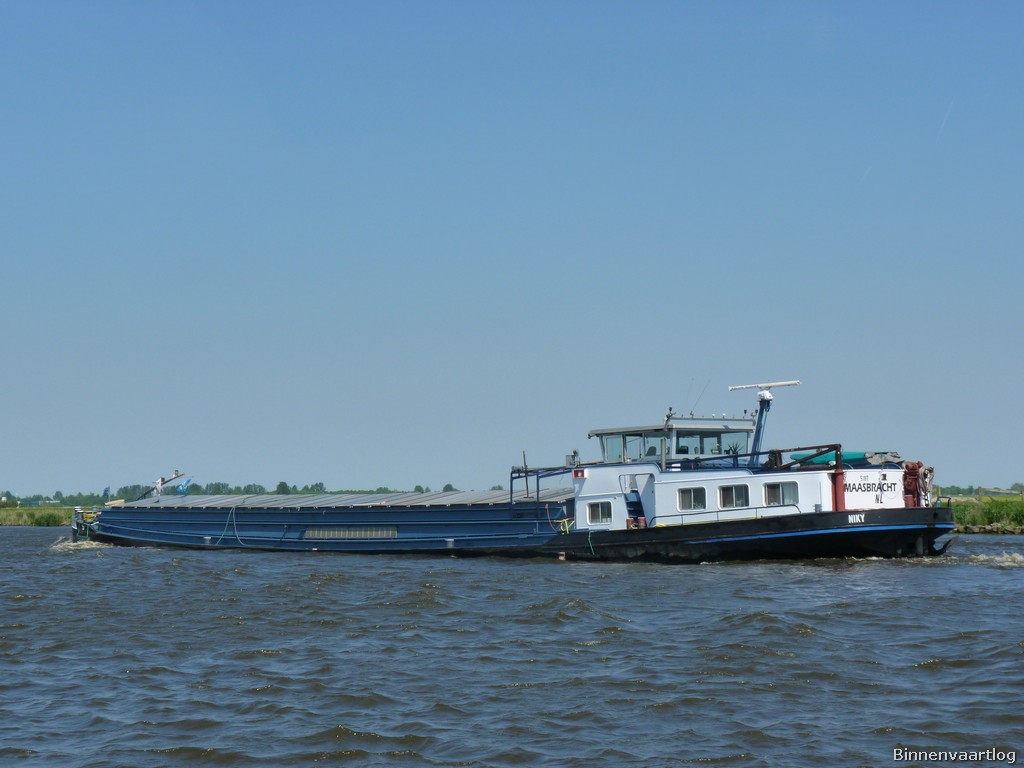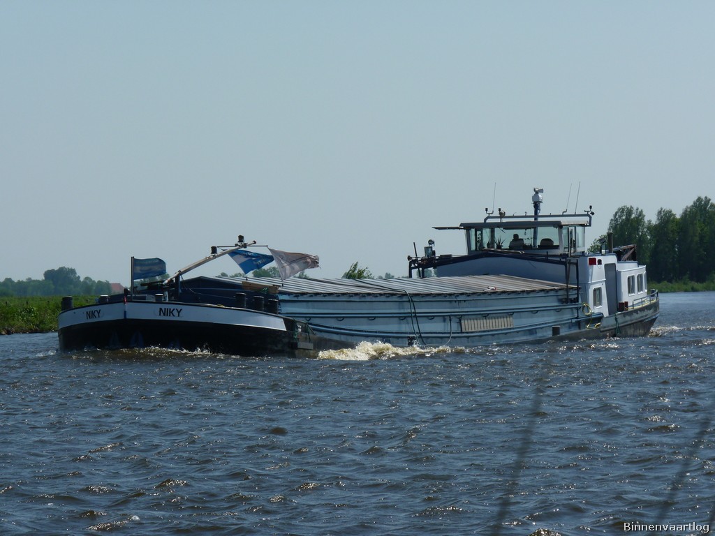 Niky , 49,99 x 6,60 x 2,27 , 518 ton , Bouwjaar 1928 , Werf Huis de Merwede in Papendrecht ( Nederland ) , 365 pk Caterpillar en 120 pk DAF boegschroef , ex Risico , ex Nelly , ex Jacowa , ex Servio , ex Mira Quest , eigenaar Vof. Duwvaart Onderneming Da-Capo (S. de Boer) in Maasbracht , ENI 02303189