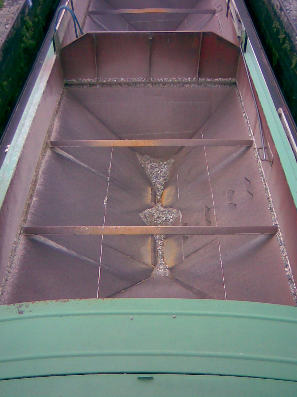La cale est comblée avec des trémies, et en dessous les trémies tu as ce tapis roulant qui fait la longueur de la cale.