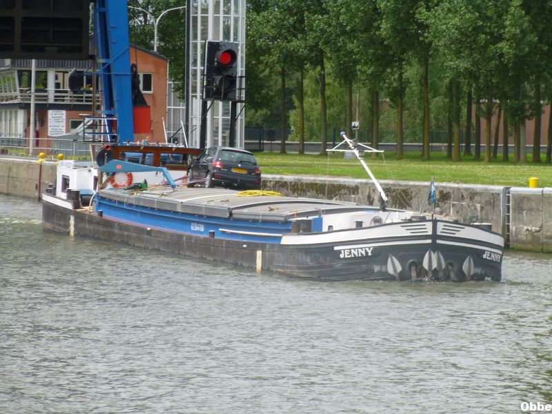 Jenny , 39,03 x 5,08 x 2,62 , 380 ton , Bouwjaar 1965 , Werf De Wachter in Boom ( Belgie ) , 250 pk Cummins , ex Con Amore , ex Allegonda , eigenaar K.Westrik in Hasselt , ENI 02314700