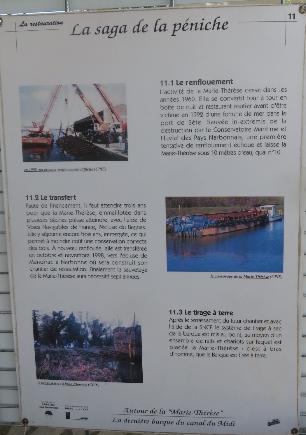 elle a été conservée ainsi avant d'être sauvegardée par "le Conservatoire Maritime et Fluvial du Pays Narbonnais".