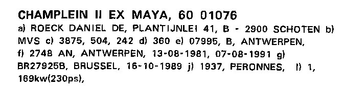 Sur l'IVR 1989 on retrouve éxactement les mêmes infos pour le MAJO 6001076 sauf le propriétaire Jonny Van Hoeyland et BR19792B (matricule qui confirme mon vieux relevé visuel)