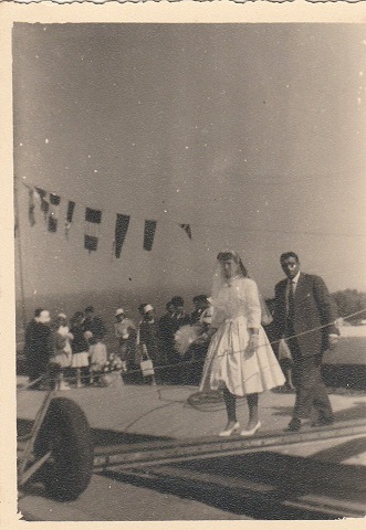 JE vous met la photo , Marite avec papa sur le Ste Therese de Lisieux