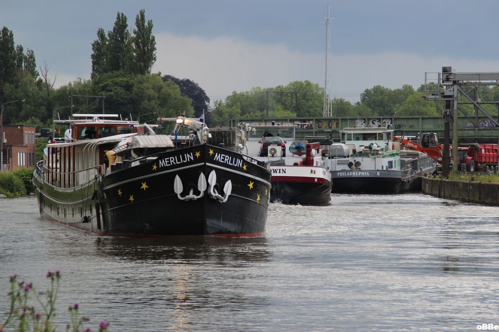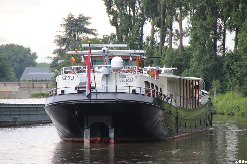 Vu à Thionville (57), un bateau construit en 1930 au chantier De Hoop de Leiden (Pays-Bas) ; 50m x 6,80m, aujourd'hui transformé en bateau à passagers :