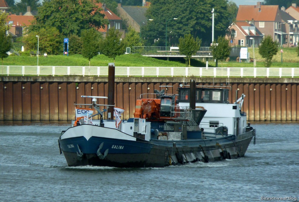 Galina , 62,32 x 7,34 x 2,41 , 639 ton , Bouwjaar 1959 , Werf Worst & Dutmer te Meppel ( Nederland ) , 365 pk GM en 195 pk DAF boegschroef , ex NSI 27 , ex Gallia , eigenaar Suiker Overslagbedrijf Vof in Hardinxveld , ENI 03160343