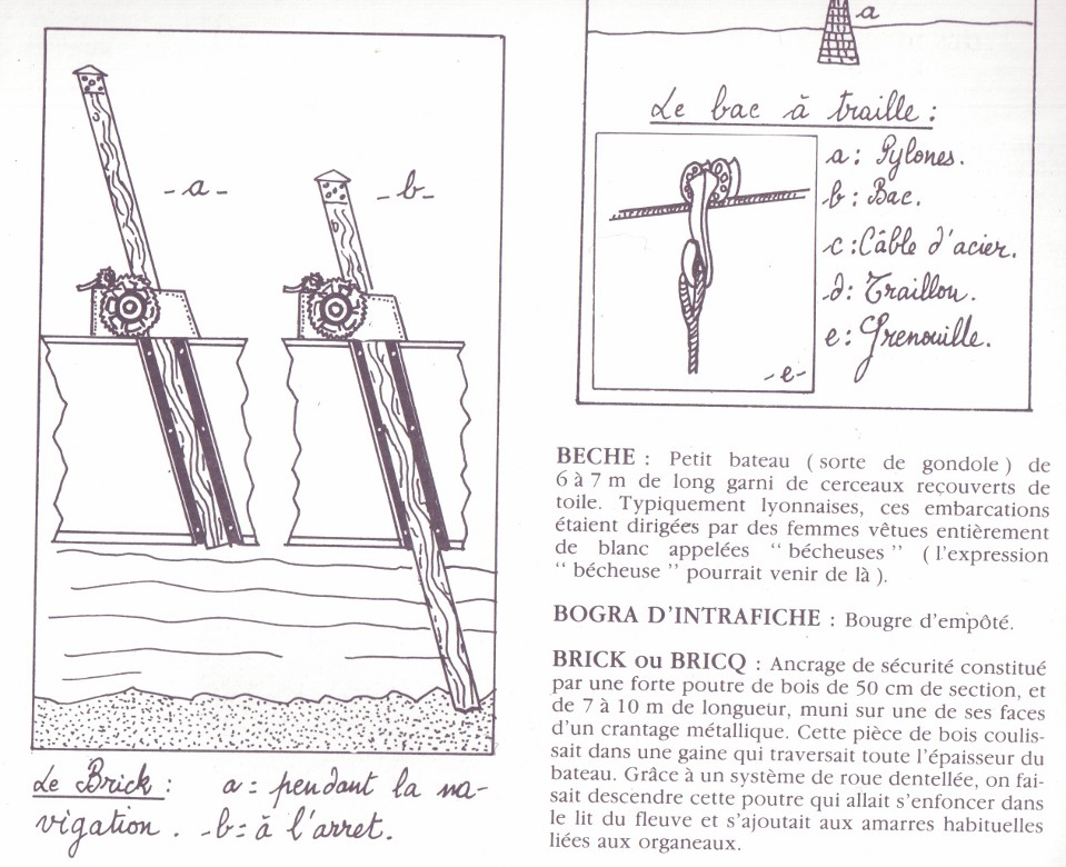 BRICK est un grand pieu armé utilisé pour l'ancrage des bateaux naviguant sur le Rhône.