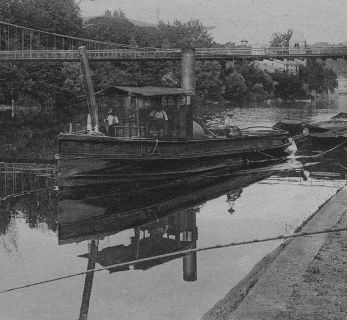 Je crois que c'est le "Brick" caractéristique des remorqueurs Rhodaniens qui compte tenu des fonds pouvaient ainsi s'ancrer aisément. On retrouve cela sur les grands remorqueurs à roue à aube du Rhône.