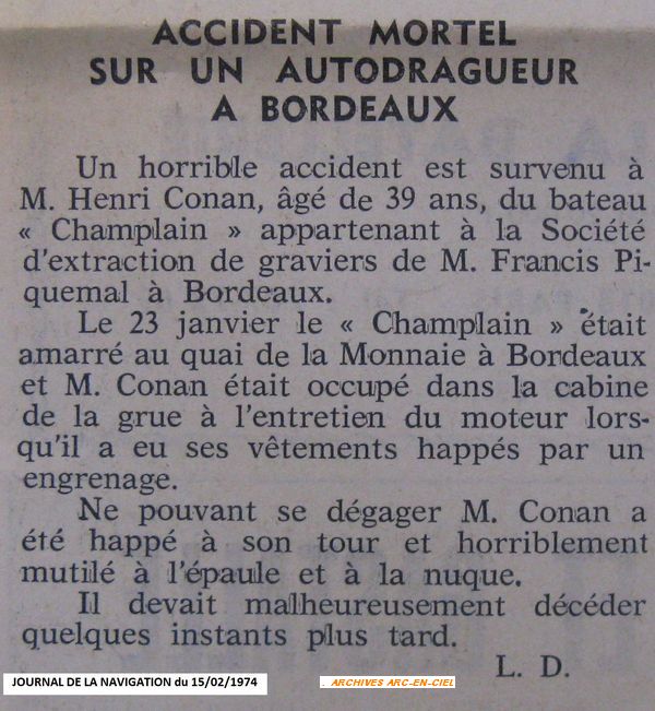 Malheureusement, il y a eu un second accident analogue en 1981 dans l’estuaire au large de Lamarque à bord du LIBOURNAIS ex PRESTO (STC1139F puis BX1654F, SCAR 1939).