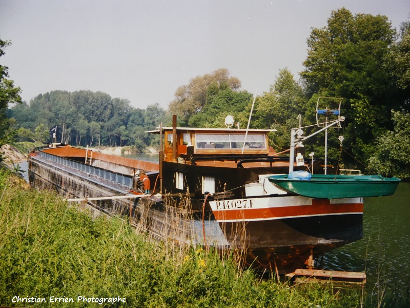 Egalement deux photos personnelles prises en mai 1989 à Balloy. Ce bateau remontait en fausse rivière à un endroit où il n'y a plus aucune navigation actuellement.