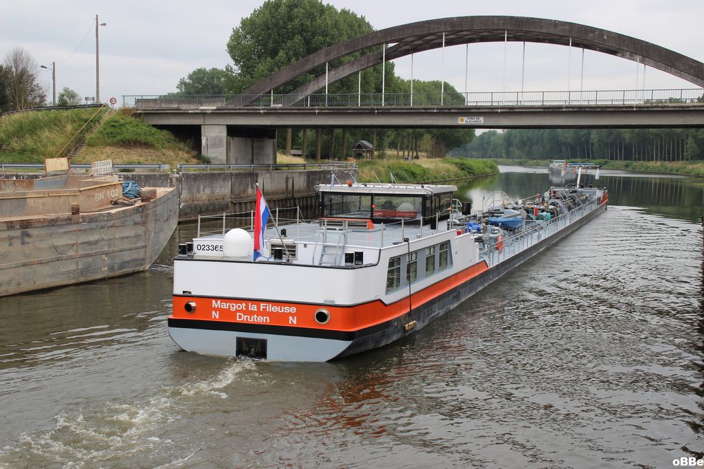Margot La Fileuse , 86,00 x 5,70 x 2,40 , 750 ton , Bouwjaar 2016 , Werf Tinnemans in Maasbracht ( Nederland ) en de Gerlien van Tiem ( Druten ) , 608 pk Caterpillar , eigenaar Wijnhoff van Gulpen en Larsen in Druten , ENI 02336569