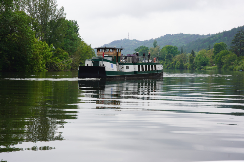 Quelques vues du FENELON amarré à Cahors puis en navigation à hauteur de Laroque-des-Arcs.