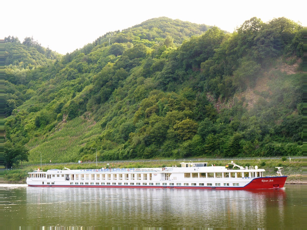 River Art , 110,00 x 11,40 x 1,50 , Bouwjaar 2005 , Werf Rosslauer Schiffswerft GmbH in Rosslau ( Duitsland ) en Vahali BV in Gendt ( Nederland ) , 2 x 953 pk Mitsubishi en 360 pk Cummins Veth-Jet boegschroef , ex Royal Gloria , eigenaar Waterway Gloriana AG in Basel , ENI 07001812