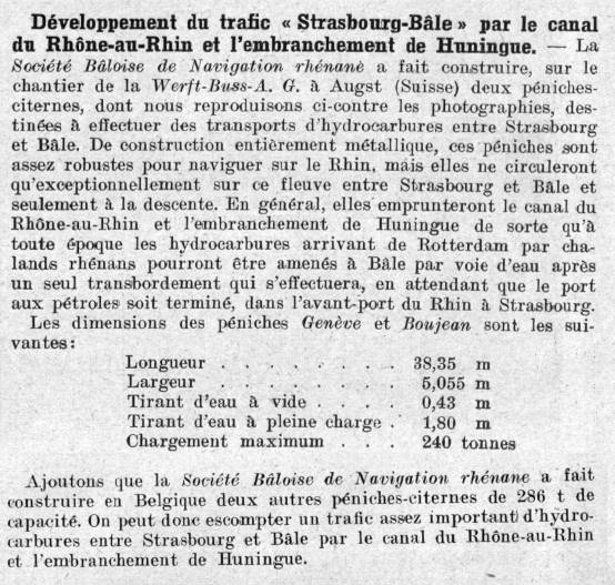 Par ailleurs, deux péniches nouvellement construites à Bâle pour le transport des pétroles, ont franchi l'écluse à destination de Strasbourg.