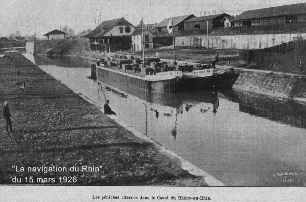 Trafic à l'écluse de Huningue - Au cours du mois de février 1926, 2 bateaux venant du canal de Huningue et chargés chacun de 170 tonnes de pétrole ont franchi l'écluse à destination de Bâle, d'où ils sont repartis à vide à destination de Strasbourg, par la voie du canal.