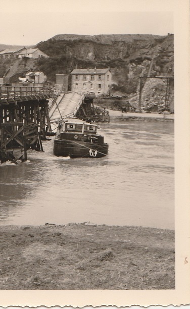 Quant aux ponts provisoires construits après destruction de guerre j'en ai connu encore un, métallique Bailey (petit), en 1996, pas sur une rivière navigable tout de même. Il était pourri de chez pourri, mais toujours en service. Je viens de regarder sur Google Street, il est reconstruit en béton.