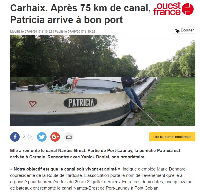 - sur le site du journal Le Télégramme, en date du 7 septembre 2017 (