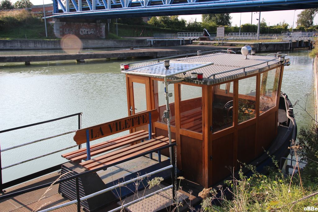 Amarré au pied du pont de l'écluse - Courchelettes Aout 2018.