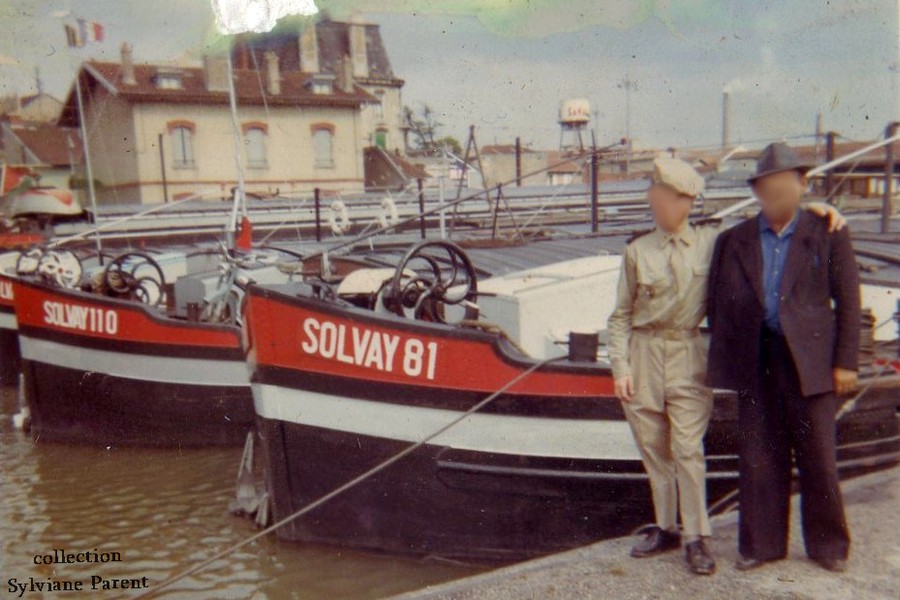 Les personnages, sur cette photo, c’était l’équipe du service entretien des péniches. Normalement, tous les cinq ans, les Solvay montaient sur cale pour une grande révision, et le service entretien Flotte (menuisiers, chaudronniers, mécaniciens, électriciens, etc...) envahissaient le bateau. Certaines fois, quand cela était nécessaire, la famille du marinier était relogée aux ‘’Écuries’’, dans des logements qui se trouvaient en face du chargement de soude. Ce nom des écuries vient du fait qu’à cet endroit se trouvaient les anciennes étables des cheveaux, avant que les Solvay soient motorisés.