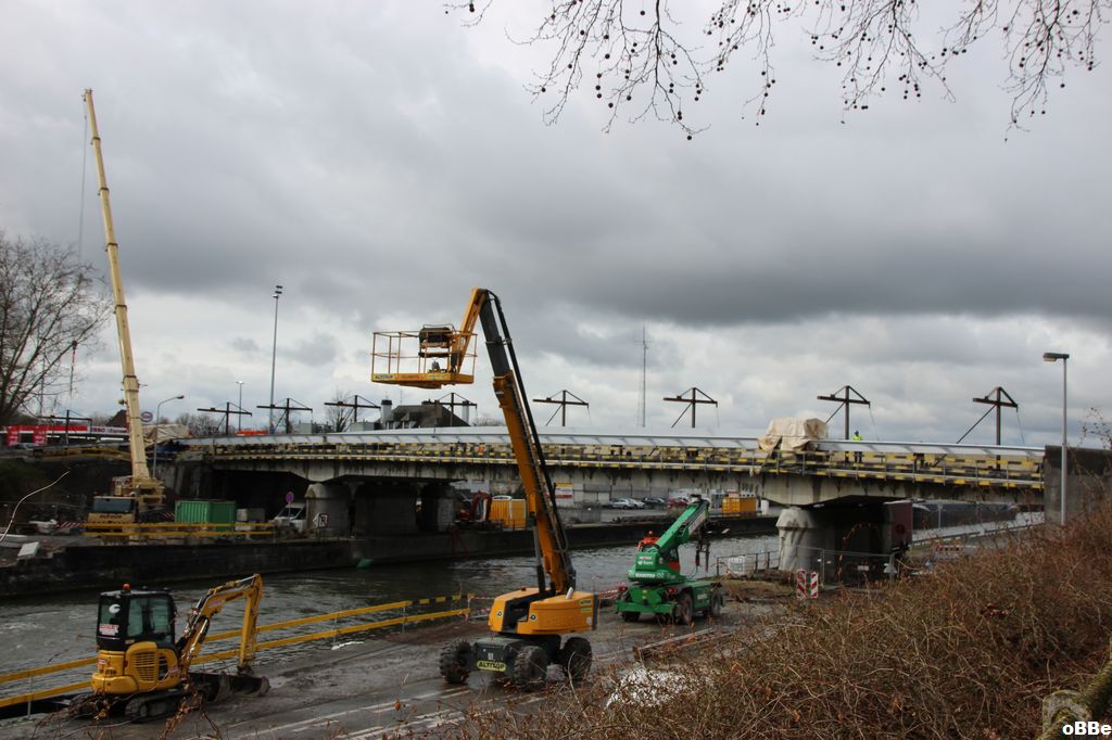 Et la préparation de la pose de la passerelle en encorbellement sur le pont Delwart*