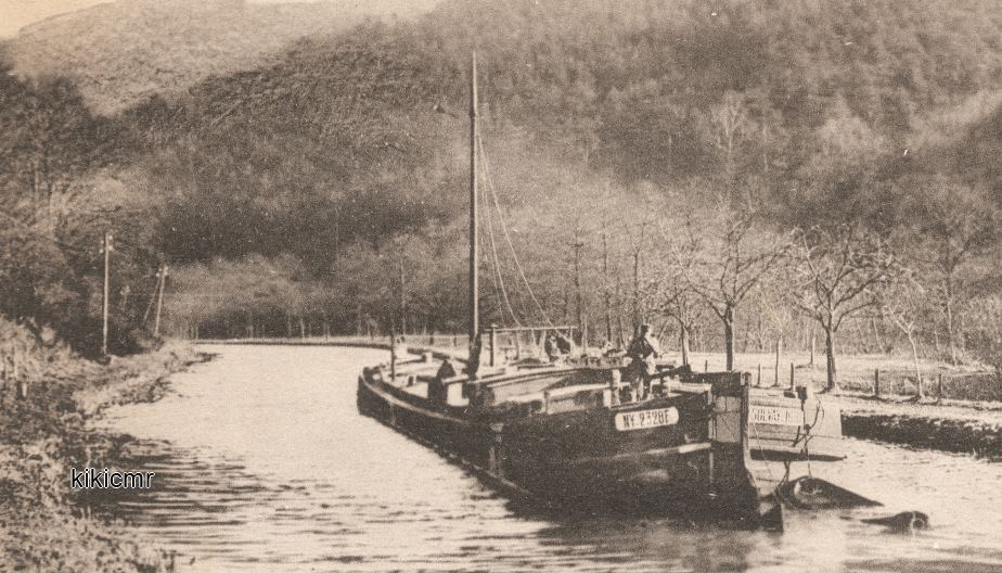 Sur cette carte postale du canal de la Marne au Rhin à Saverne, on voit bien le matricule de la péniche, c'est un bateau en bois de la flotte Solvay :