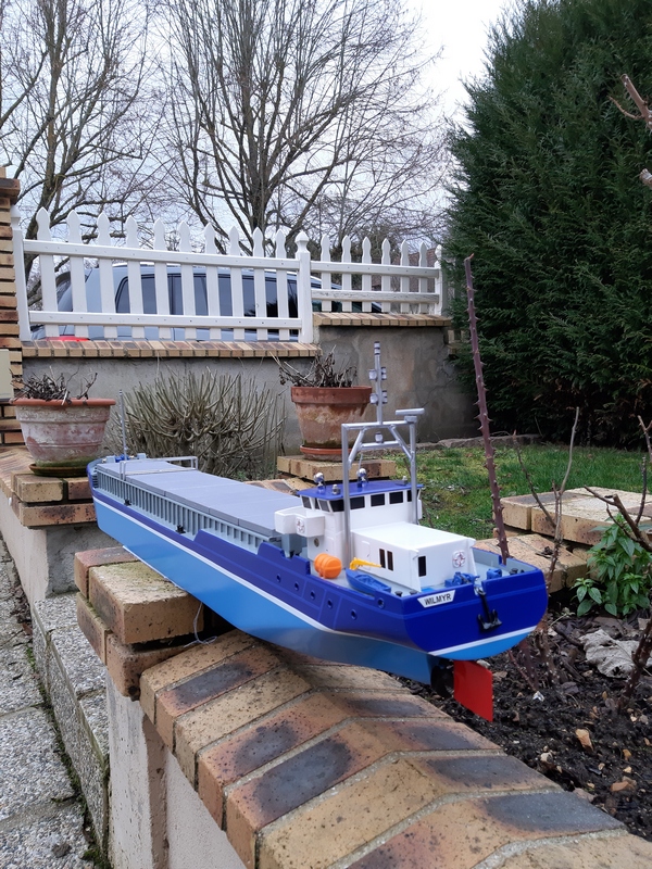 maquette du WILMYR un caboteur fluviaux maritime,chantier DAMEN au Pays-Bas.model:combi coaster 2750.88mx11.30m au plus bas 5.04m de bordail et 6m au plus haut.rèaliser au 1/65 éme(1.24mx16cm).2750tonnes.maquette navigante