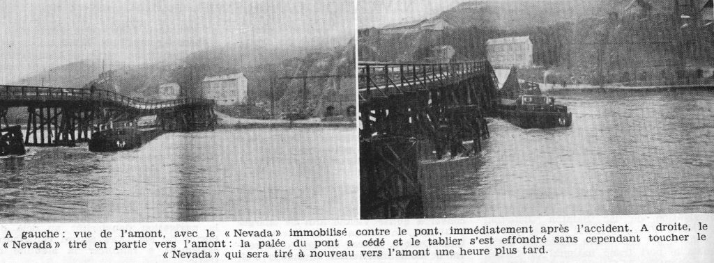 Voici l'accident NEVADA / SOLVAY 98 tel qu'il est relaté dans la Revue de la Navigation intérieure et rhénane du 10 mars 1955 :