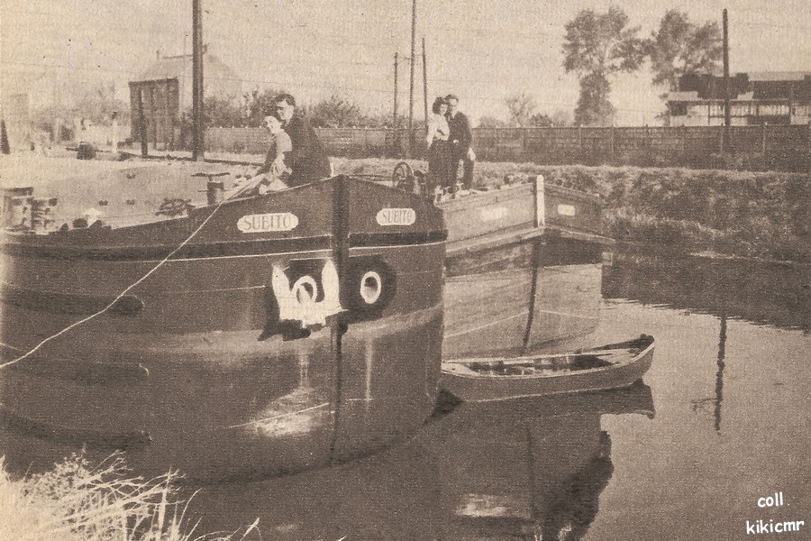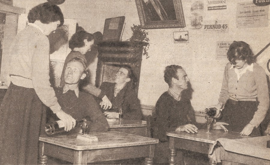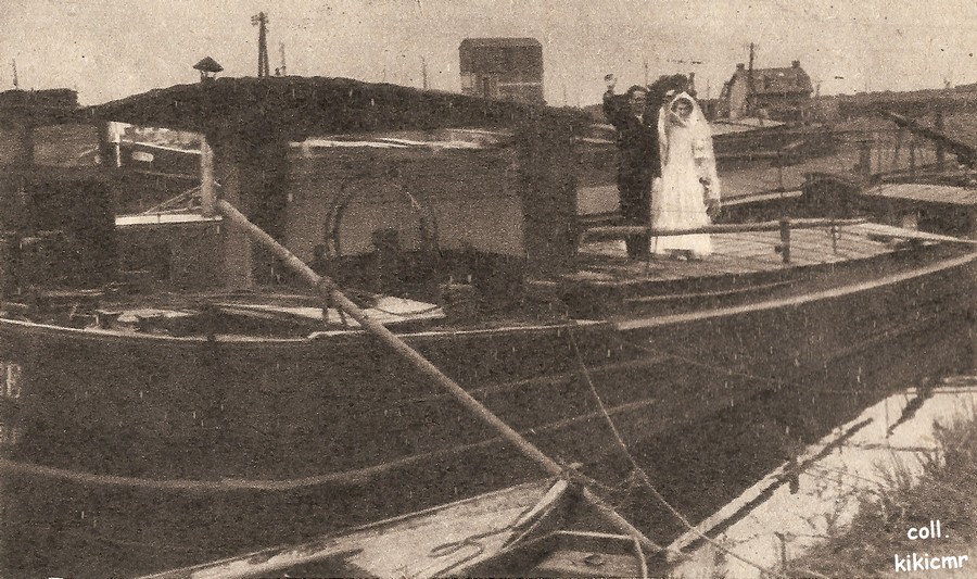 Au n°26 de la rue du Quai-de-Bruay, à Béthune, est situé un café tenu par un ancien marinier, M. Decarpentrie. Ce brave homme n'a pas oublié le métier qu'il exerça durant de longues années et c'est toujours avec plaisir qu'il voit arriver chez lui un ex-collègue. Mais depuis quelques temps, trois jeunes mariniers ne manquaient jamais de lui rendre visite lorsqu'ils étaient à Béthune... Et M. Decarpenterie se rendit vite compte que sans être insensibles à l'intérêt de sa conversation, les trois jeunes hommes paraissaient beaucoup plus sensibles... à la présence de ses charmantes filles : Germaine, Évelyne et Fernande. Et les trois sœurs regardaient avec sympathie ces trois solides gaillards qui exerçaient un métier qu'elles connaissaient bien, puisqu'elles étaient nées elles-mêmes sur l'eau et avaient vécu longtemps sur une péniche. Elles les avaient rencontrés au bal ou à la gare d'eau et, peu à peu, la sympathie fit place à un sentiment beaucoup plus profond.