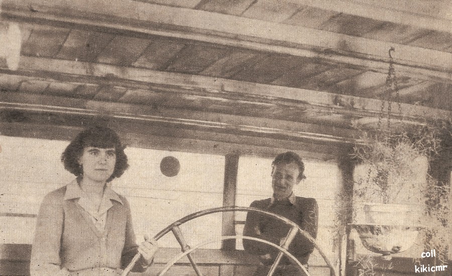 8 - Mais Fernande a voulu prendre elle-même la direction du bateau. « Si elle mène aussi bien les affaires de notre ménage, ce sera parfait », semble se dire François, en souriant.LUNE DE MIEL... au fil de l'eau