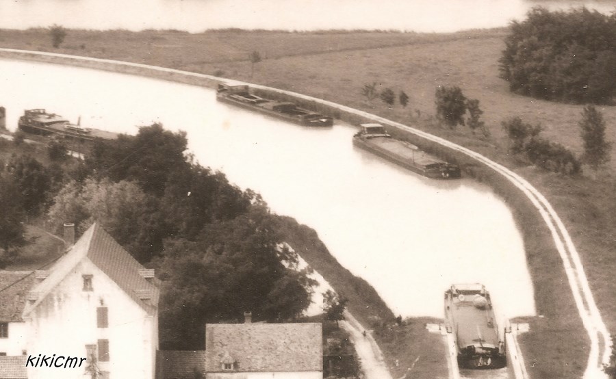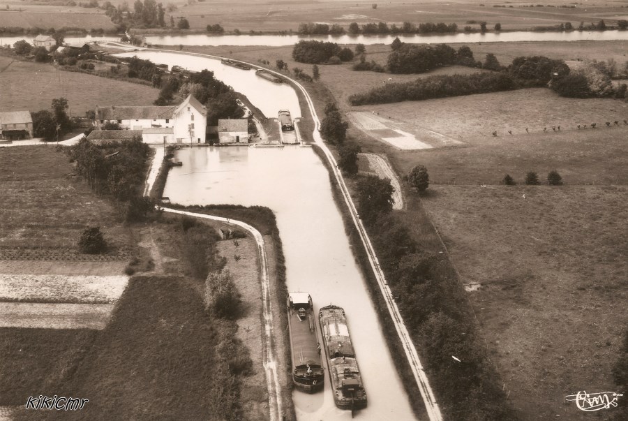 Sur une photo aérienne de Saint-Symphorien, au bout du canal du Rhône au Rhin côté Saône...
