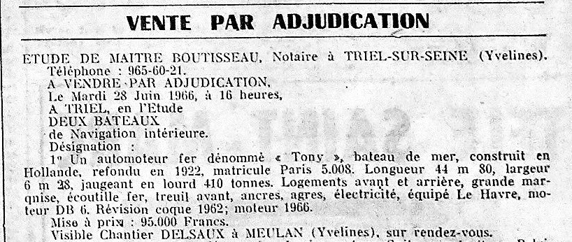 et J'ai retrouvé une annonce pour sa vente en 1966,