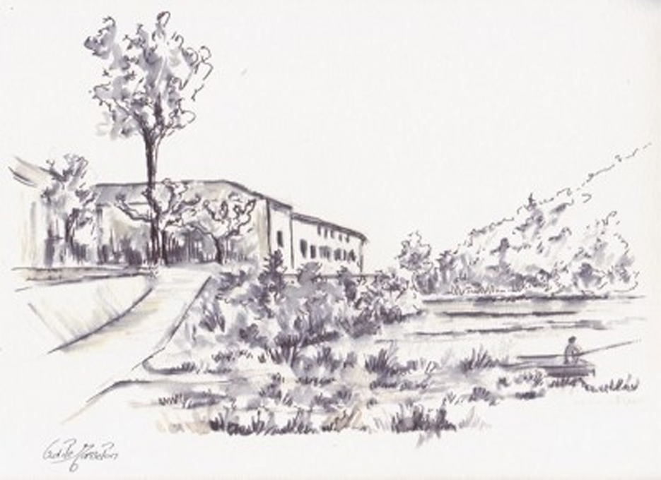 - Moly Sabata vu du Rhône. Croquis à l'encre d'Odile